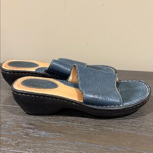 Elegant blue leather mules. Perfect for casual wear. EUC