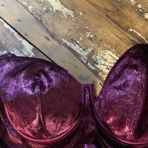 Indulge in the luxurious feel of this Victoria's Secret bra, crafted from sumptuous purple velvet. Designed with molded cups and adjustable straps, it ensures a perfect fit and exceptional support. The deep purple hue adds a touch of elegance to your intimate wardrobe.