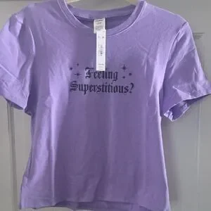 Chic lavender tee with bold graphic design. Perfect for casual wear.