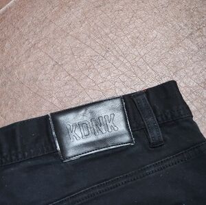 Stylish black biker style pants with ribbed detailing on the knees. Perfect for a trendy look.