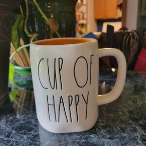 Rae Dunn CUP OF HAPPY Mug White/Orange Ceramic Coffee or Tea Cup 16oz NEW