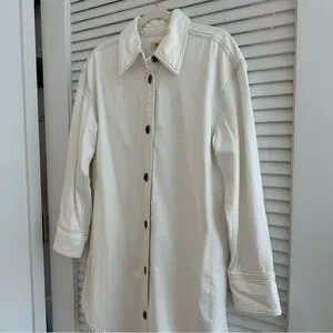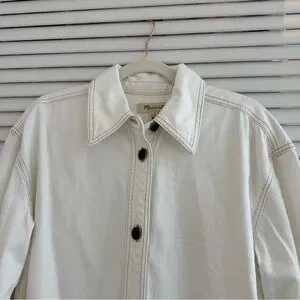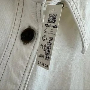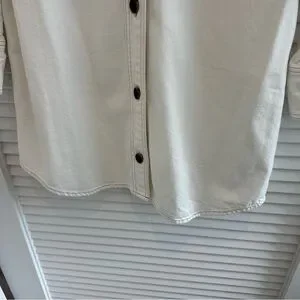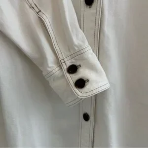 NWT Madewell shirt dress, long sleeve with 2 button closure at wrists, classic collar, 7-button front closure that can fully open, dark brown shell-like buttons, white with light brown stitching, u-shaped bottom hem, 21” pit to pit, 34” top of shoulder to bottom hem