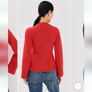 Pistola Dani Cardigan in Rouge - a bright, cherry red. Size medium. The shape is incredibly flattering, especially the slight bell sleeve but I'm a creature of habit and have basically the same sweater from another brand I wear more 🙃 About 18.25" from underarm to underarm and just over 23" from shoulder seam to hem. Worn twice.