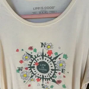 Life Is Good Women's Cream Floral Compass Crusher Tee