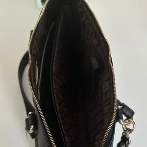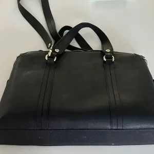 Elegant black laptop bag by Henri Bendel. Features sturdy handles and sleek design. Perfect for business and travel.