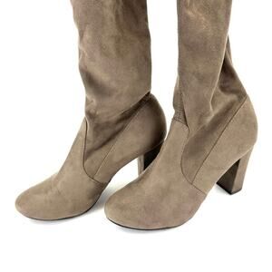 🦬 Heart In D Tan Thigh High/Over The Knee Boot Size 8.5 Faux Suede/Stretchy Fabric Block High Heel.