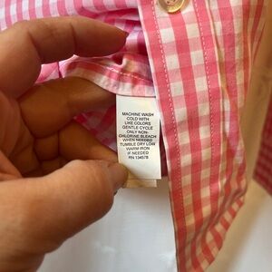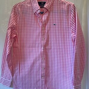 Gently worn bright pink checkered shirt by Vineyard Vines. Classic button-down design. This shirt is technically a Boys Large (Size 16) but it fits me and I generally wear small and medium women's tops.