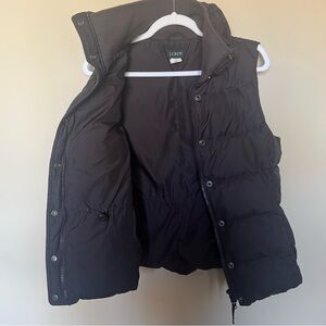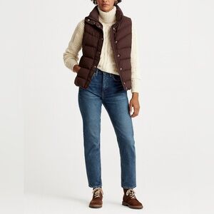 Stay cozy and chic in this timeless J.Crew brown puffer vest. Featuring a quilted down design, button front closure, and a high collar for added warmth, this vest is the perfect layering piece for fall and winter.