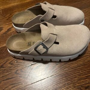 Women’s stylish tan mules by Papillon Blanc. Comfortable slip-on design. Worn only 3 times. Great condition! Size 41 (10.5 women’s)