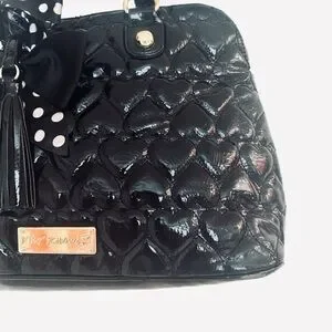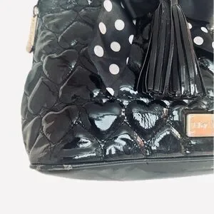 BETSEY JOHNSON ~ Large Black Quilted Hearts Handbag with Polka Dot Twilly