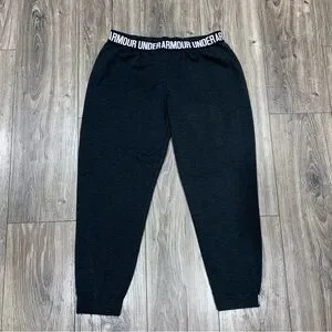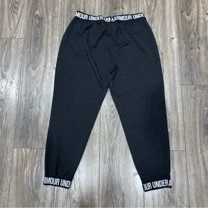 Under Armour loose fit dark gray joggers. Size medium.These super soft joggers have no pockets, stretchy elastic logo waistband and ankle bands.