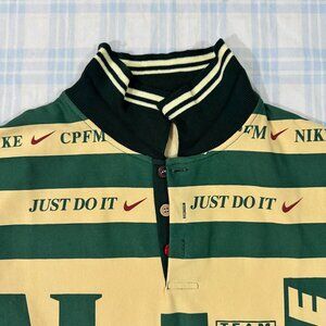 Nike Men's Logo Print Contrast Stripe Long Sleeved Polo Shirt