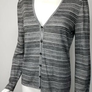 Escada Saks Fifth Avenue Silk gray silver striped Cardigan 34