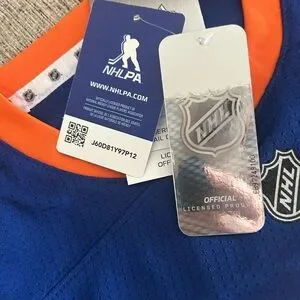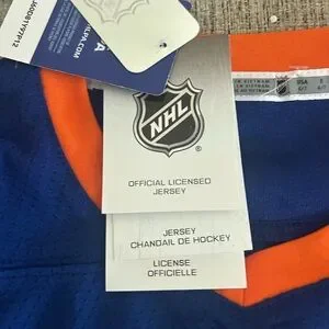 Show your team spirit with this NHL Islanders jersey, featuring the iconic blue and orange colors. Crafted from durable athletic material, this jersey is perfect for any hockey enthusiast. The prominent Islanders logo on the front adds a touch of authenticity to your game day attire. Matthew Barzal. Retail price is 70 dollars.
