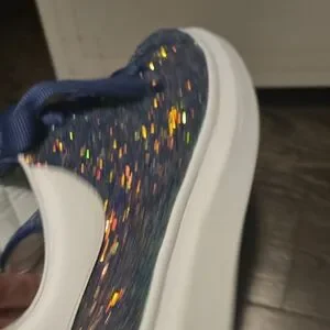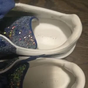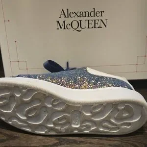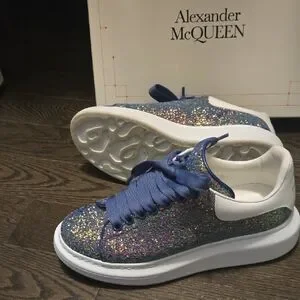 Chic Alexander McQueen sneakers in white with blue glitter details. Ideal for a stylish look.