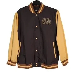 Vans Men’s Nylon Varsity Bomber Jacket – Black & Antelope Tan – Size Large – NWT