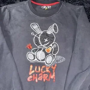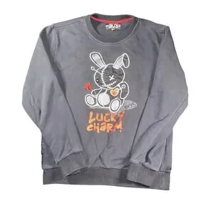 BKYS Sweatshirt Mens Large Black Lucky Charm Bunny Graphic Pullover Crewneck