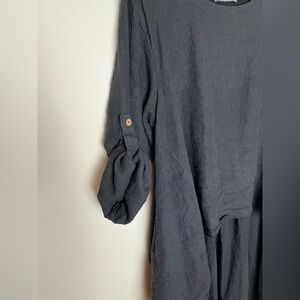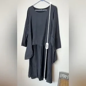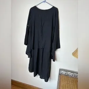Chic black dress with long sleeves. Flowy and elegant design. Perfect for versatile styling.