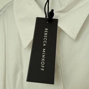 This sophisticated white dress shirt by Rebecca Minkoff features a sleek design and button-down front.
