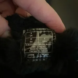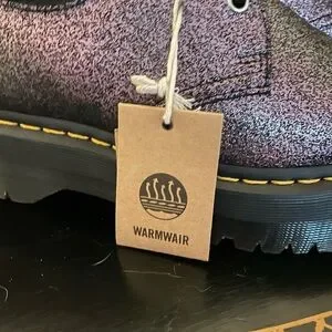 Shimmering glitter design. Durable black sole. Iconic Dr. Martens style. Never worn! Very soft and fuzzy inside.