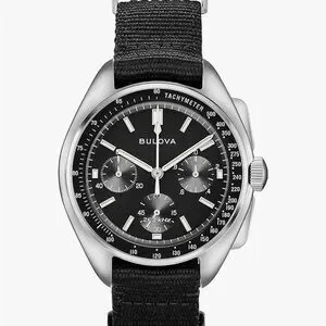 Bulova Men's Archive Series Lunar Pilot 6-Hand Chronograph High Performance Quartz Stainless Steel, Black NATO Strap and Sapphire Crystal Style: 96A225