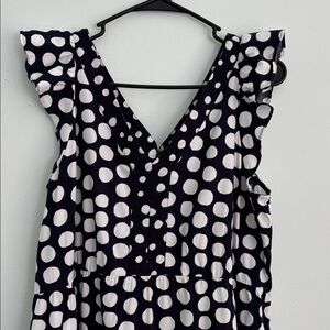LOFT Maxi Dress size large navy blue and white polka dots tiered flutter sleeve