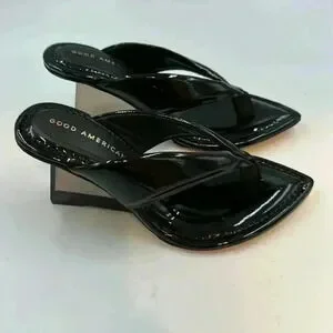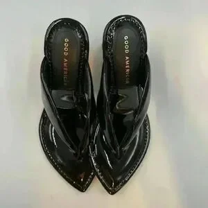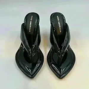 🆕 w/box, tags and shoe box. Good American black patent leather thong heels sz 5. Leather soles, square heel and pointed toe.