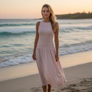 Universal Thread Womens Light Pink Sleeveless Smocked Bodice Maxi Dress Large