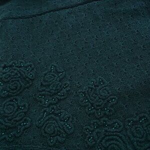 vintage Northern Traditions Hunter Green Knit Floral Beaded button-up Cardigan S