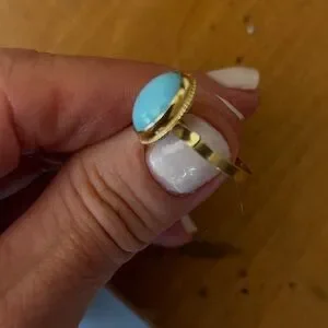 This exquisite gold ring features a captivating turquoise oval stone, perfect for adding elegance to any ensemble.