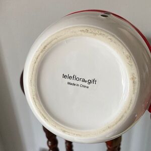Vintage Teleflora snowman large mug used for the flower arrangement gift during Christmas season. Red scarf, charcoal eyes, mouth and buttons complete with carrot nose. Preowned in excellent condition, no chips or cracks.