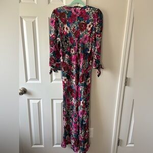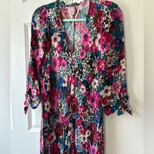 Floral print maxi dress by Zara. Beautiful for spring in blue, purple and pink floral. Size extra large. 3/4 sleeve. Very good condition.
