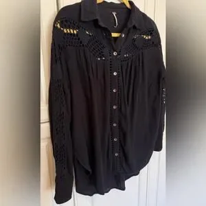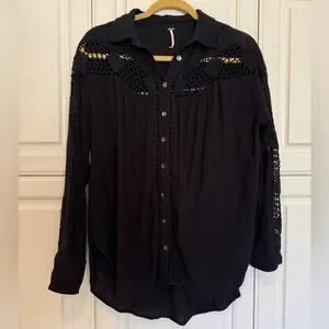 Free People Women’s Black Button Down Longsleeve Top Size XS Oversized Layer