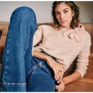 Sezane Zaria Bow Jumper Pale Pink Mohair Wool Sweater Size XS