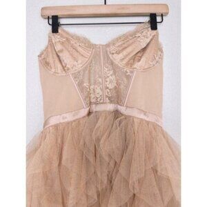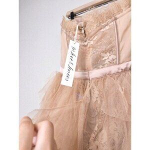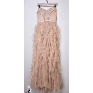 NWT For Love & Lemons x REVOLVE Bustier Gown XL Warm Taupe Ruffle Tulle Lace