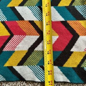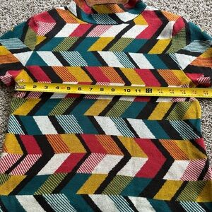 Bold chevron pattern with vibrant colors. Short sleeves and a stylish design. Perfect for a chic look.