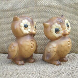 Vintage owl salt and pepper shakers from 1970s. Hand painted porcelain. Made by Josef Originals, stickers on both shakers. Made in Japan, have "Japan" stickers on bottoms. Original rubber stoppers. Shakers are 3 1/2 inches high, 2 1/2 inches wide, 2 inches front to back. Good vintage condition. No cracks. Pepper shaker has tiny paint chip on tail edge. Salt shaker has some paint chipping on forehead from age/use. See photos. Great for anyone who likes owls.