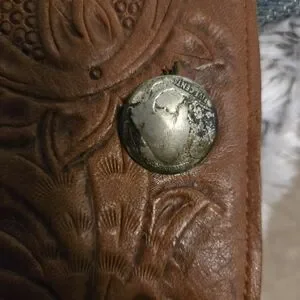 Genuine vintage Ralph Lauren Country hand tooled 100% cow leather vest in gorgeous whiskey/cognac colorway, with beautiful southwestern blanket fabric back and buffalo head silver button closure.