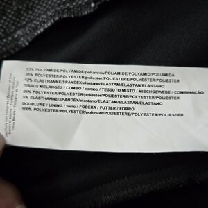 53% Polyester, 35% Polyester, 12% Spandex