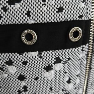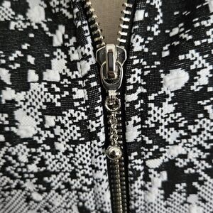 Joseph Ribkoff's eyelet accent jacket comes with tailored natural waist and highly structured shoulders with cropped hem and fitted three-quarter length sleeves. This garment has zipper closure and classic collar look.