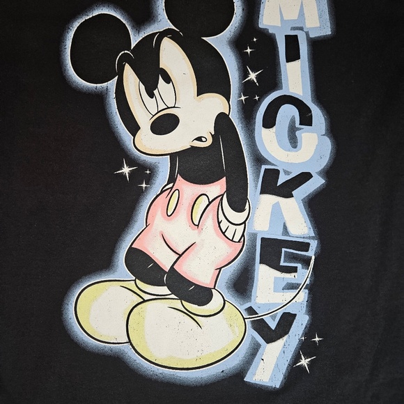 Short sleeve crewneck. Official Disney licensed apparel with internal Disney Mickey Mouse logo printed label.