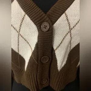 Chic argyle pattern. Button-up front. Ideal for layering.