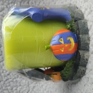 Vintage (kmart) Colorful Halloween Candle Holder with Witch and Pumpkins Bat And Cat