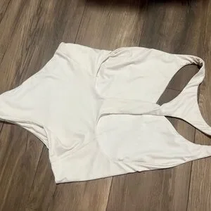 Stylish white one-piece swimsuit featuring a unique shark design. Perfect for beach days.