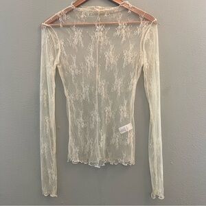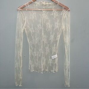 Aubrey Lace Top by By Together, a whimsical addition to your fall/winter wardrobe. Crafted from a blend of 90% nylon and 10% spandex, this romantic top features a fit ideal for a night out. With its mock neck and long sleeves, the knit jacquard lace design adds a touch of elegance.