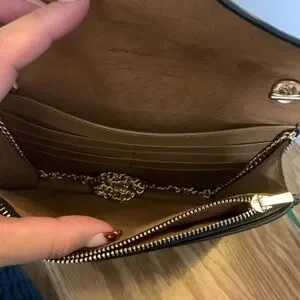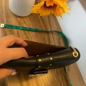 This elegant black women's bag features a stylish chain strap, perfect for any occasion. Its sleek design adds a touch of sophistication to your outfit.