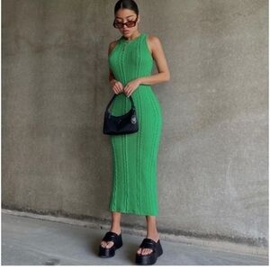 Zara Women’s Green Long Sleeveless Cable Knit Dress SZ M!
