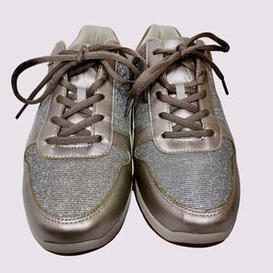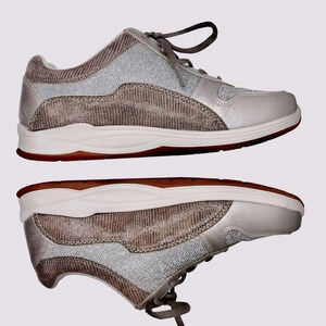 DREW Tuscany Sneaker in Pewter Leather/Glitter Mesh Size 9.5