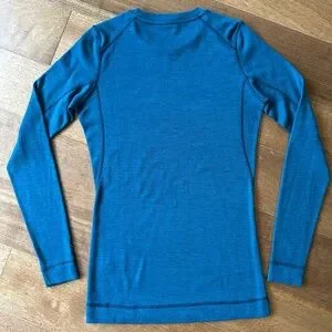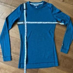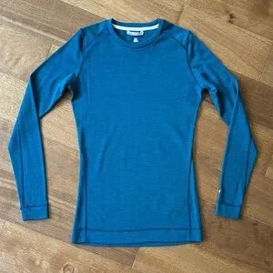 Stylish teal crew neck top by Smartwool. Perfect for versatile wear. Color is a blue green best seen depicted in the pics with the fabric content / care label. No stains, snags, or holes. Smoke free, pet friendly home.