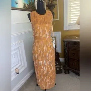 Mac Duggal Sleeveless Abstract Beaded Midi Dress